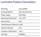 Die cast aluminum shell coated with polyester powders with high resistance to atmospheric agents and corrosion with flood beam symmetric light distribution. An energy-saving replacement for traditional floodlight luminaires. Offers longer service lifetime and less maintenance. Efficient air convection cooling design.