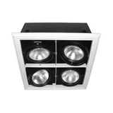 Adjustable recessed square quatable multi luminaires for directional light distribution system PAR lamps. High lamp position and vertically grooved black baffle ensure high lighting comfort level.