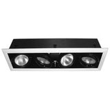 Adjustable recessed linear quatable multi luminaires for directional light distribution system PAR lamps. High lamp position and vertically grooved black baffle ensure high lighting comfort level.