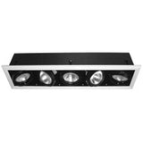 Adjustable recessed linear penta multi luminaires for directional light distribution system PAR lamps. High lamp position and vertically grooved black baffle ensure high lighting comfort level.
