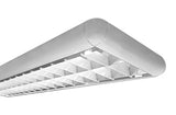 Designed for direct surface mounted single parabolic with mirror optic louvre with christmas cross blades and prismatic diffuser. High performance slim type luminaires.In process interior ambience. An attractive appearances is enhanced with rounded edges body surround. Mounting holes and knock out holes are provided for either surface mounting or suspension with rods.